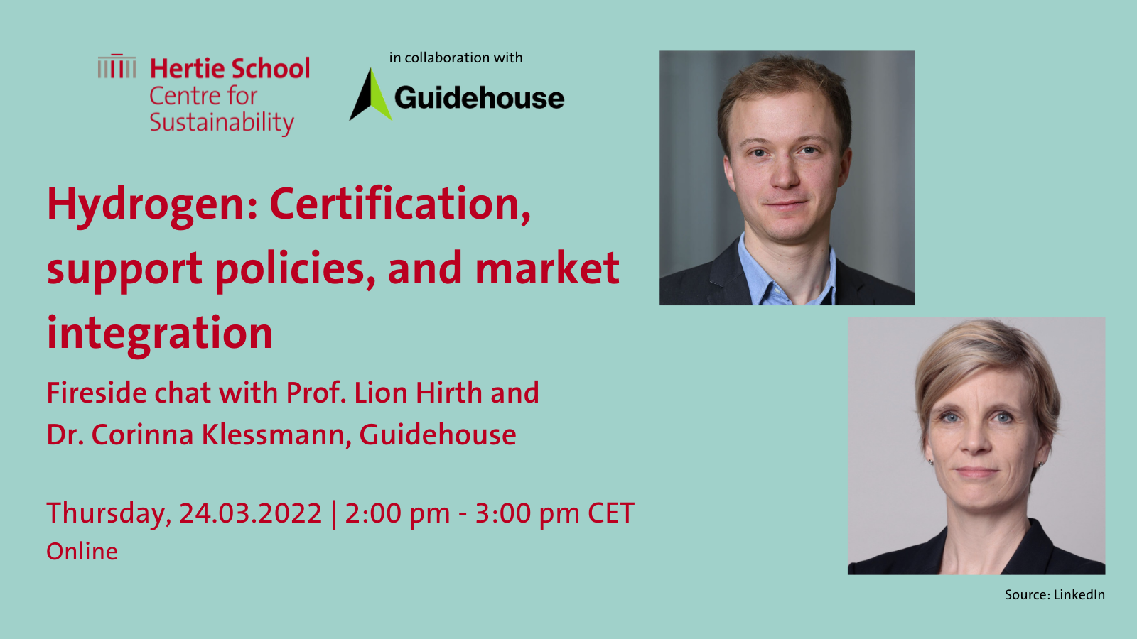 Register here by 23 March 2022 to join a virtual fireside chat with Prof. Lion Hirth and Dr. Corinna Klessmann of Guidehouse.