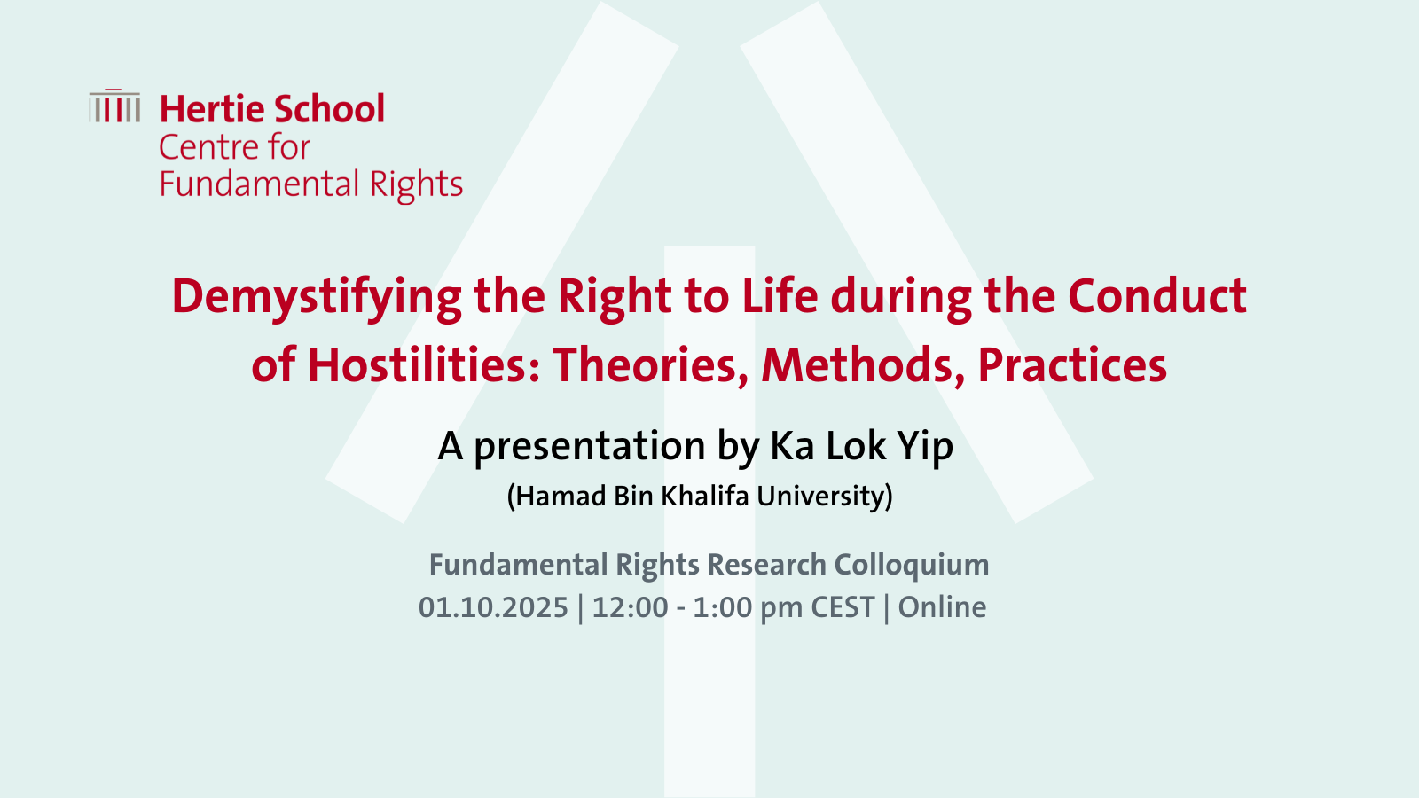 A presentation by Ka Lok Yip, Haman Bin Khalifa University. This event is part of the Fundamental Rights Research Colloquium under the "Human Rights in Times of War" cluster hosted by the Centre for Fundamental Rights.
